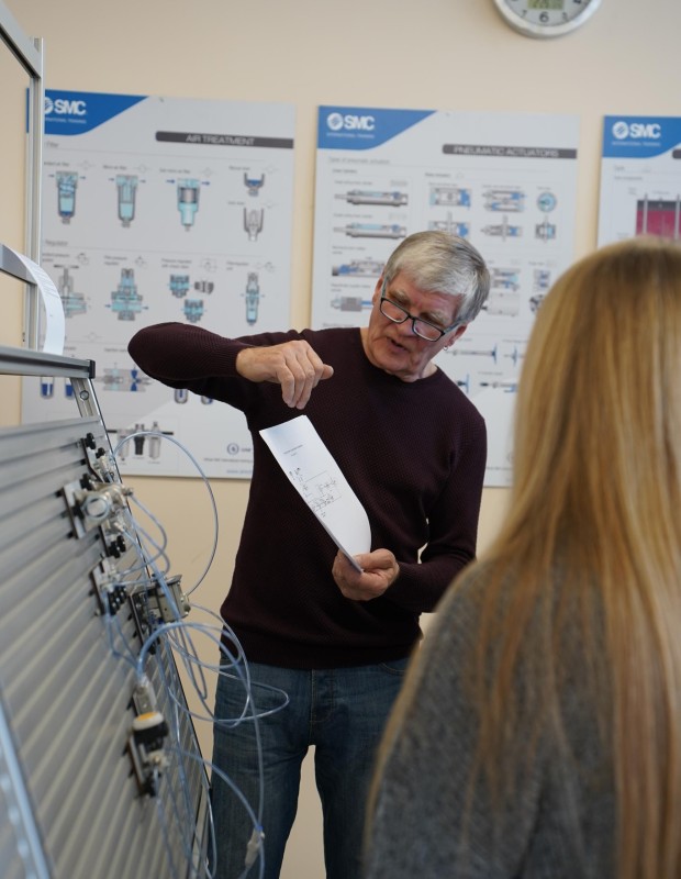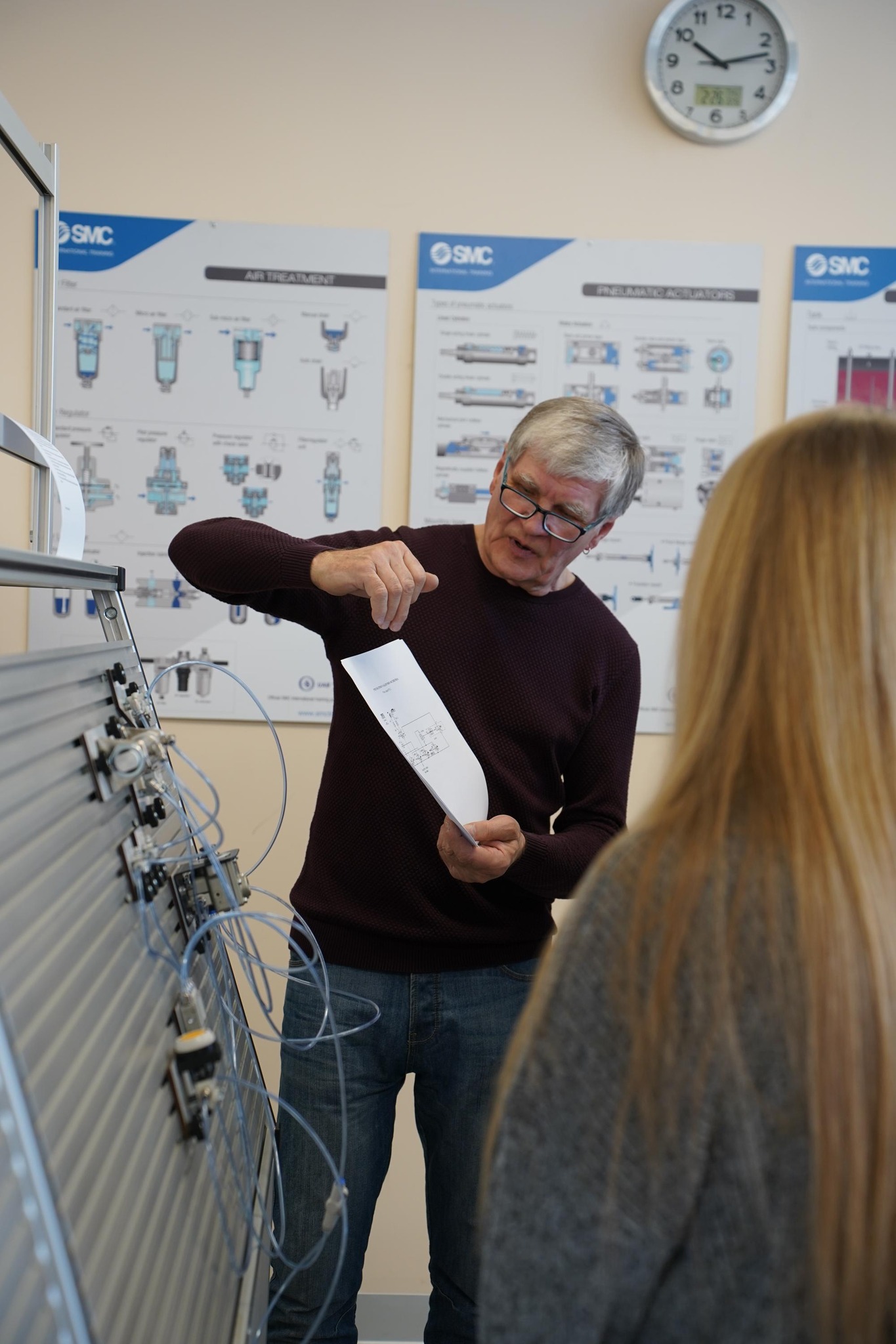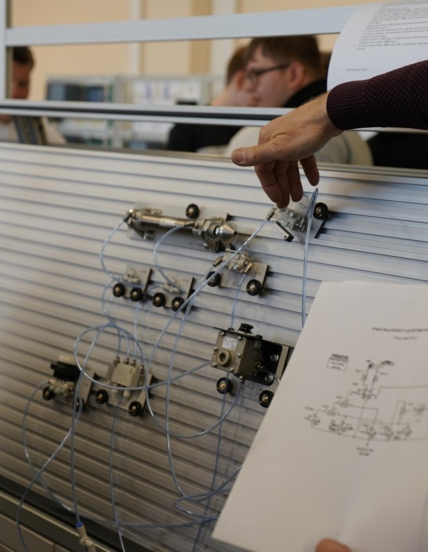 Mechatronikos kabinete jie artimiau susipažino su mechatroniko profesija: aiškinosi, kas yra pneumatika, kaip veikia „Siemens“ valdikliai ir kuo svarbus valdiklių programavimas.