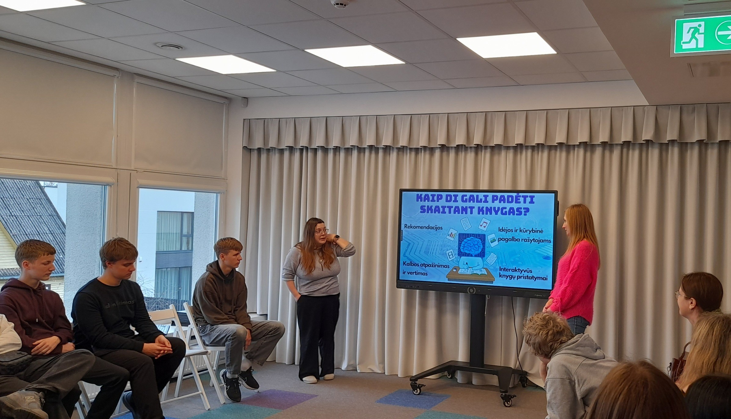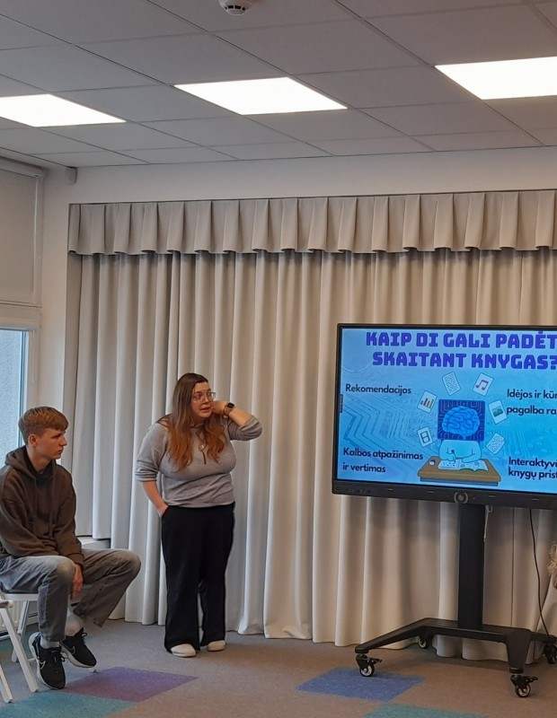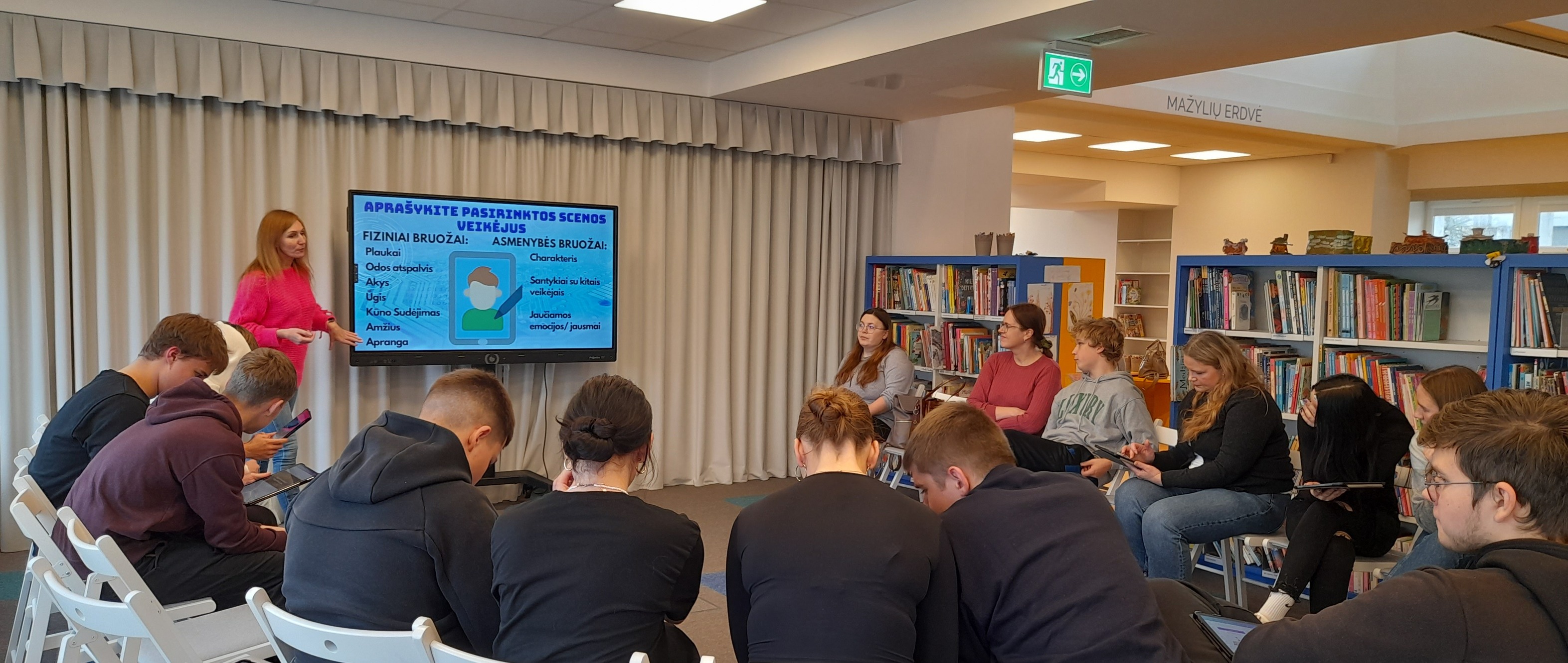 Dirbdami poromis ir komandomis, naudodamiesi Leonardo AI ir Canva programomis, jie kūrė literatūros kūrinių ekranizacijų pristatymus – vaizdus, tekstus ir trumpus vaizdo įrašų siužetus, apibūdindami veikėjų išvaizdą, asmenybės bruožus, santykius su kitais veikėjais, jaučiamas emocijas ir svarbiausius siužeto momentus.