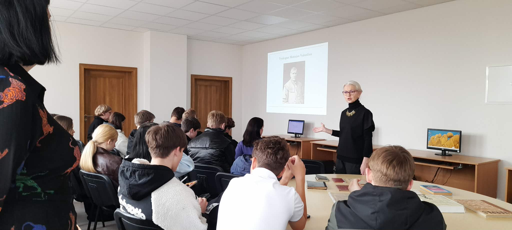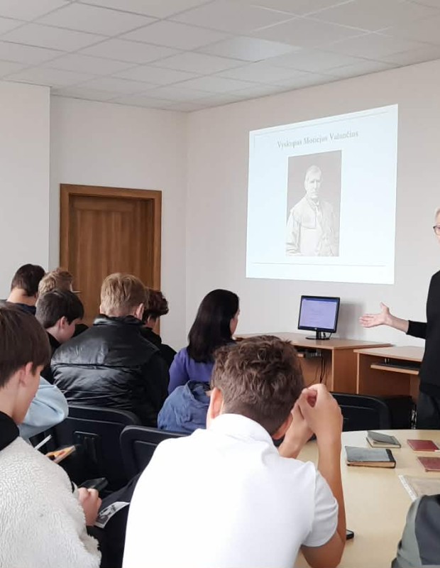 Svečiuose lankėsi istorikė, bibliotekininkė Ona Peseckaitė. Viešnia papasakojo mokiniams apie 1864-1904 m. lietuviškos spaudos draudimo laikmetį, caro valdžios vykdytą lietuvių nutautinimo politiką bei žemaičių vyskupo Motiejaus Valančiaus vaidmenį organizuojant lietuviškų knygų platinimo tinklą, steigiant lietuviškas mokyklas ir skleidžiant lietuvišką žodį. Ji pristatė žymiausio knygnešio - Jurgio Bielinio asmenybę, aktyviausius Panevėžio krašto knygnešius ir kartu apžvelgė Garšvių draugijos, G. Petkevičaitės-Bitės ir kunigo Juozo Tumo-Vaižganto indėlį į lietuvių kalbos ir kultūros išsaugojimą.