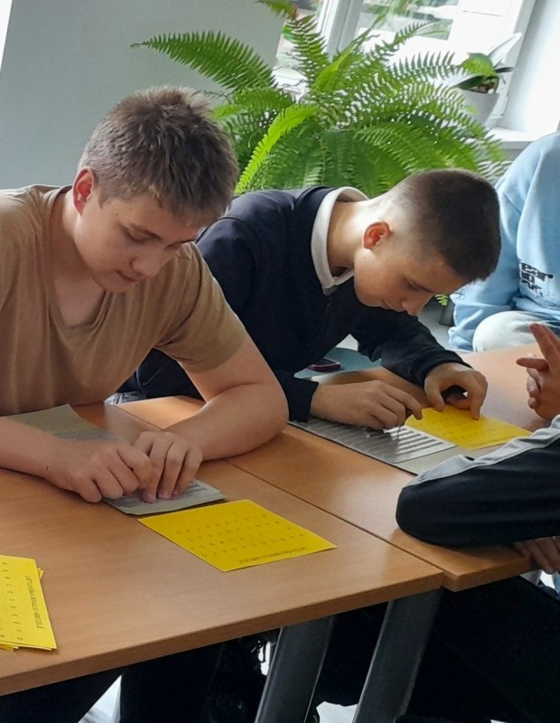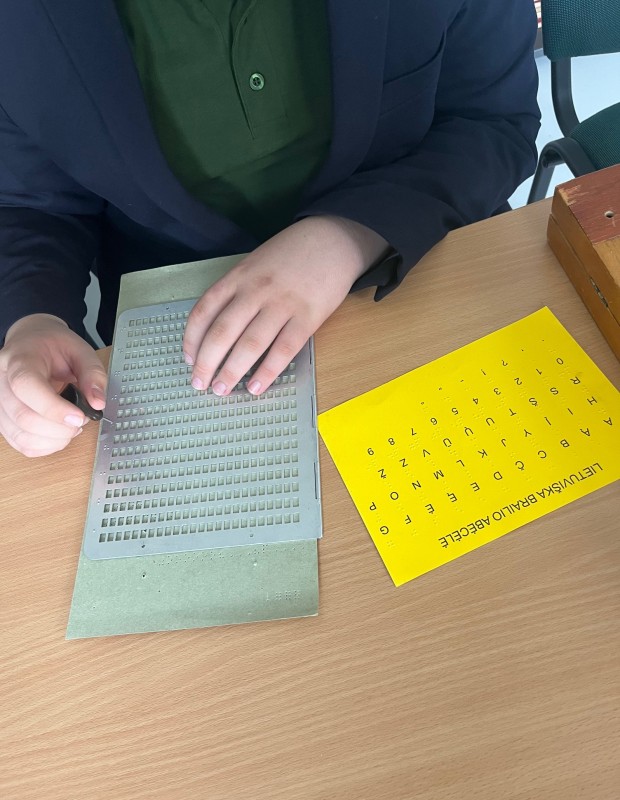 Mokiniai taip pat turėjo unikalią progą pasitelkdami lytėjimą patyrinėti akliesiems ir silpnaregiams skirtas knygas bei pabandyti Brailio raštu parašyti savo vardus. Jie sužinojo, kaip neregiai „žiūri“ filmus, žaidžia kortomis arba šachmatais, kaip dirba kompiuteriu ir kaip specialiu termometru pasimatuoja kūno temperatūrą. Edukacijos metu dalyvius labiausiai suintrigavo goldbolo (aklųjų riedulio) kamuolys ir žinia, kad 2017 metais Lietuvos goldbolo rinktinė tapo Europos čempione.