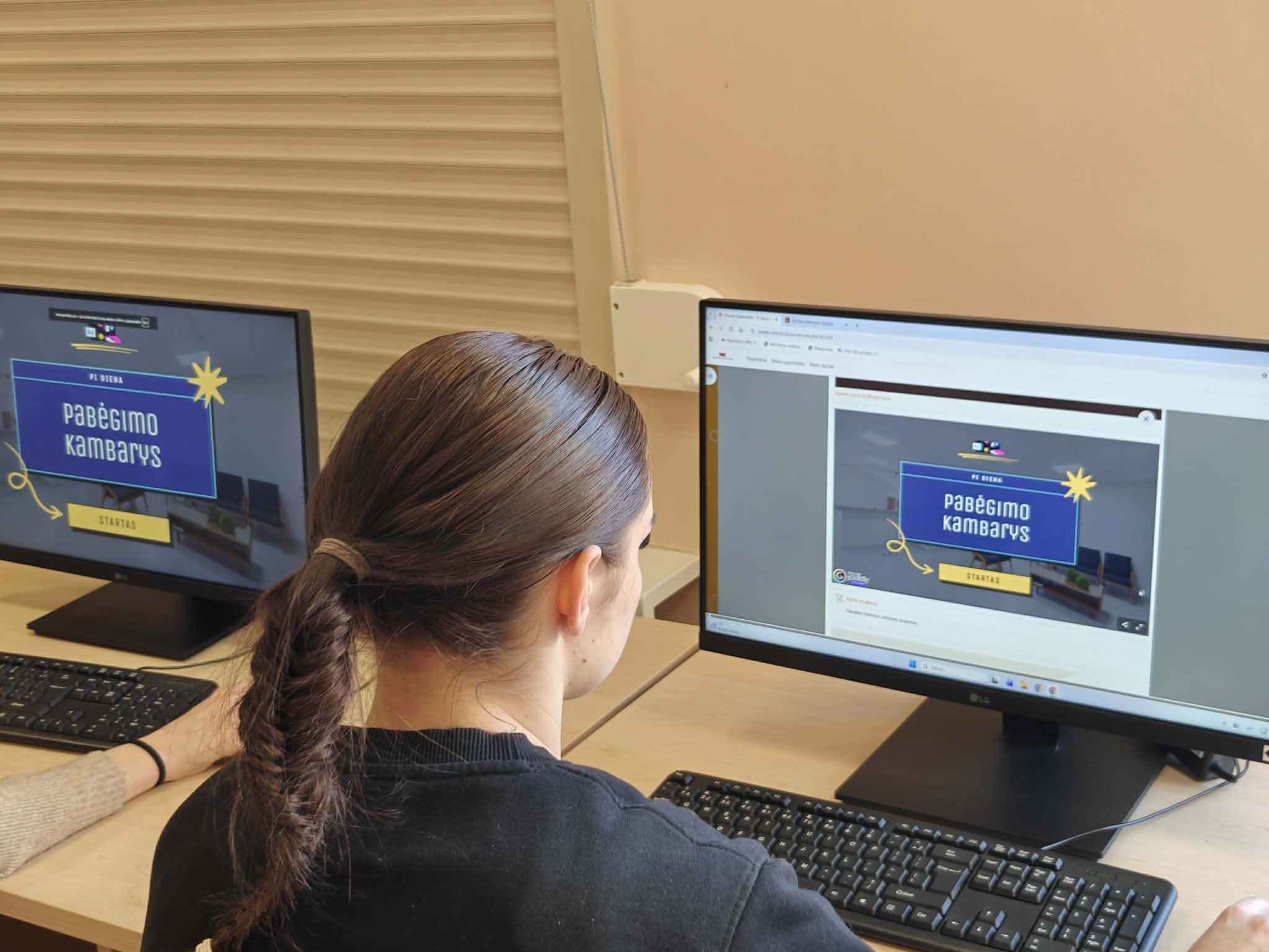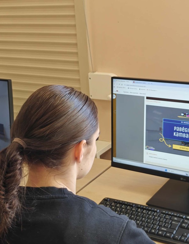 Sukauptas žinias mokiniai galėjo pritaikyti virtualiame žaidime „Pabėgimų kambarys“, kuriame netrūko iššūkių, smalsumo ir azarto. Ruošdamiesi šiai progai, mokiniai taip pat atskleidė savo kūrybiškumą kurdami piešinius savarankiškai arba pasitelkdami dirbtinį intelektą.