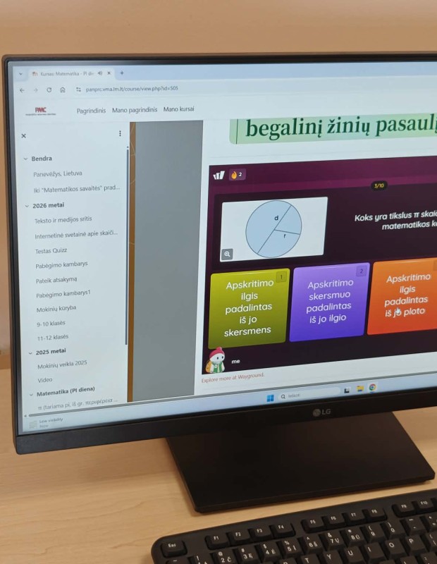 Matematikos pamokų metu mūsų mokiniai artimiau susipažino su skaičiumi π (3,14), jo istorija ir pritaikymu kasdieniame gyvenime. Jie gilino žinias, ieškojo atsakymų į klausimus ir dar kartą įsitikino, kad matematika slypi kur kas daugiau nei formulėse ar skaičiavimuose.