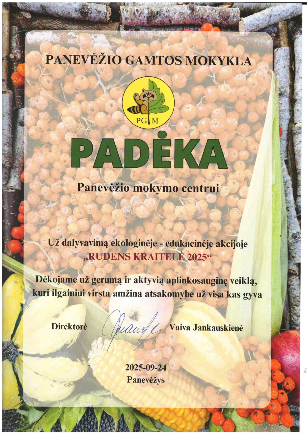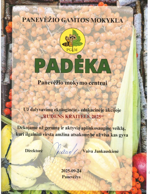 Džiaugiamės, kad šiais metais į Panevėžio Gamtos mokyklos organizuojamą ekologinę-edukacinę akciją „Rudens kraitelė – 2025“ įsitraukė ne tik moksleiviai, bet ir kiti mūsų bendruomenės nariai. Atneštas gėrybes į Gamtos mokyklą pristatė mokytoja Rita Urmonienė, bibliotekininkės Jolanta Sriubienė ir Lina Kelpšienė bei plytelių klojėjo - tinkuotojo padėjėjo profesijos mokiniai.