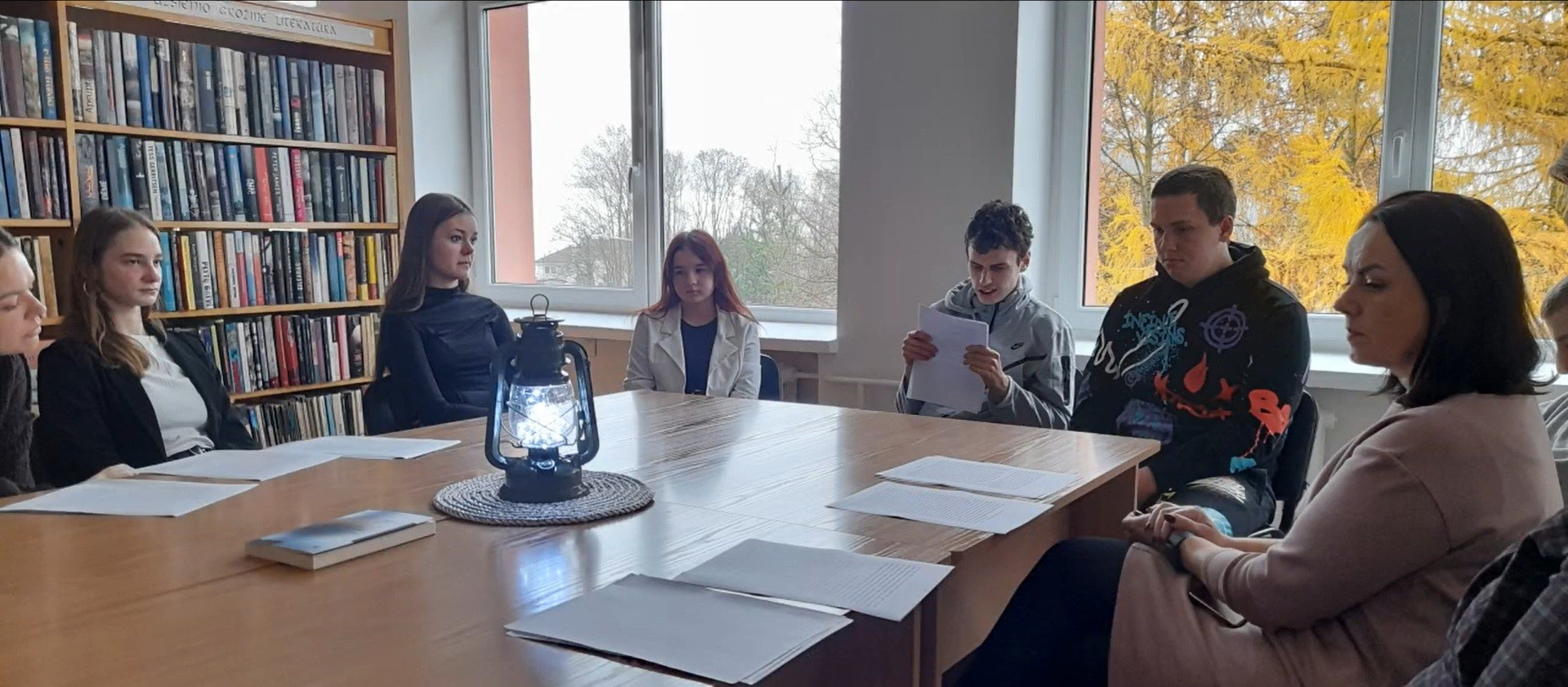 Minint Šiaurės šalių literatūros savaitę, mūsų įstaigoje buvo organizuojami skaitymai „Sutemų valanda“, į kuriuos įsitraukė ne tik mokiniai, bet ir mokytojos bei bibliotekininkės. Skaitėme norvegų rašytojo Jon Fosse, apdovanoto Nobelio literatūros premija, kūrinio „Trilogija“ pirmosios dalies „Nakvišų klajonės“ ištrauką.