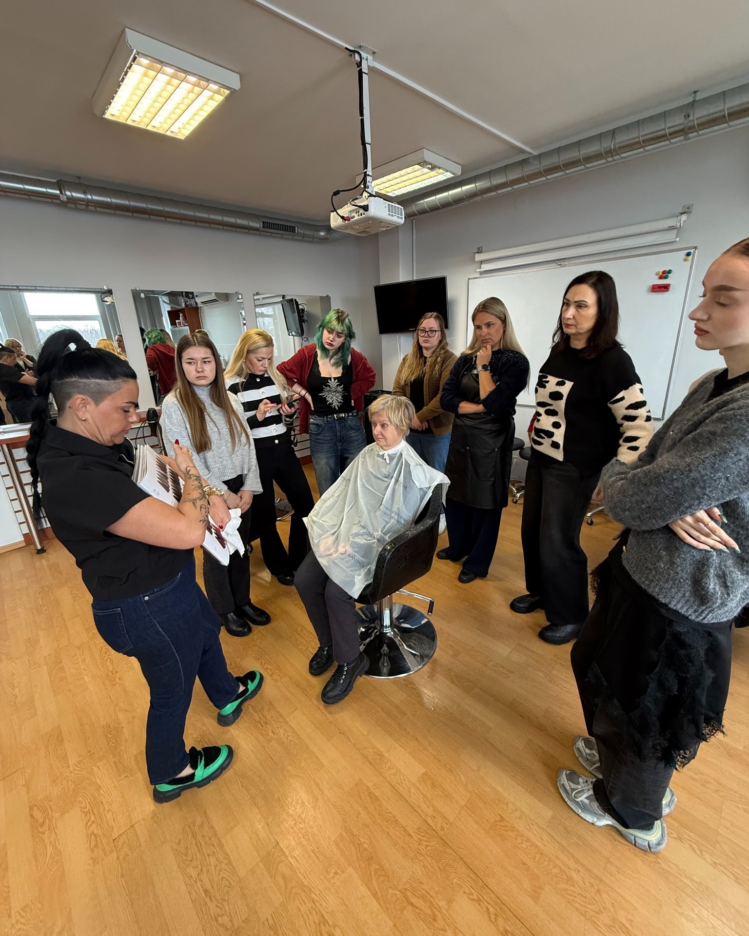 Kirpėjo specialybės mokiniams buvo surengtas seminaras, kuriame dėmesys skirtas žilų plaukų dažymui ir plaukus puoselėjančioms procedūroms. Aptarta, kuo žili plaukai skiriasi savo struktūra, kaip parinkti tinkamą atspalvį, užtikrinti tolygų padengimą ir išgauti natūralų bei tvarkingą rezultatą.
