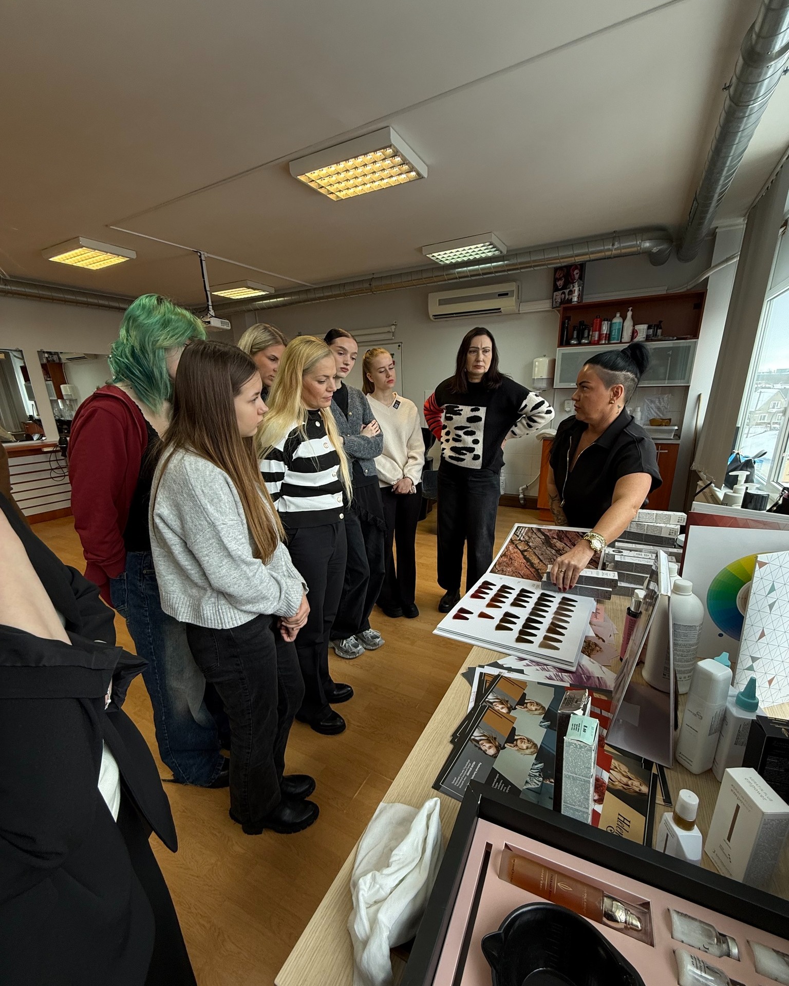 Susitikimo metu buvo pristatyti profesionalūs „Helen Seward“ plaukų dažai, leidžiantys pasiekti sodresnius atspalvius ir užtikrinti švelnesnį poveikį plaukui. Mokiniai taip pat susipažino su „Jean Paul Myne“ plaukų puoselėjančiomis procedūromis, kuriose naudojamas amino rūgščių kompleksas, plaukų botoksas ir kiti atstatomieji sprendimai. Aptarta, kaip tokios procedūros gali padėti atkurti plaukų būklę, suteikti daugiau žvilgesio, elastingumo ir glotnumo.