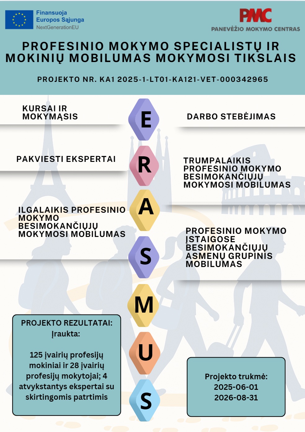 | 2023/2025 m.m. profesinio mokymo specialistų ir mokinių mobilumas mokymosi tikslais |
